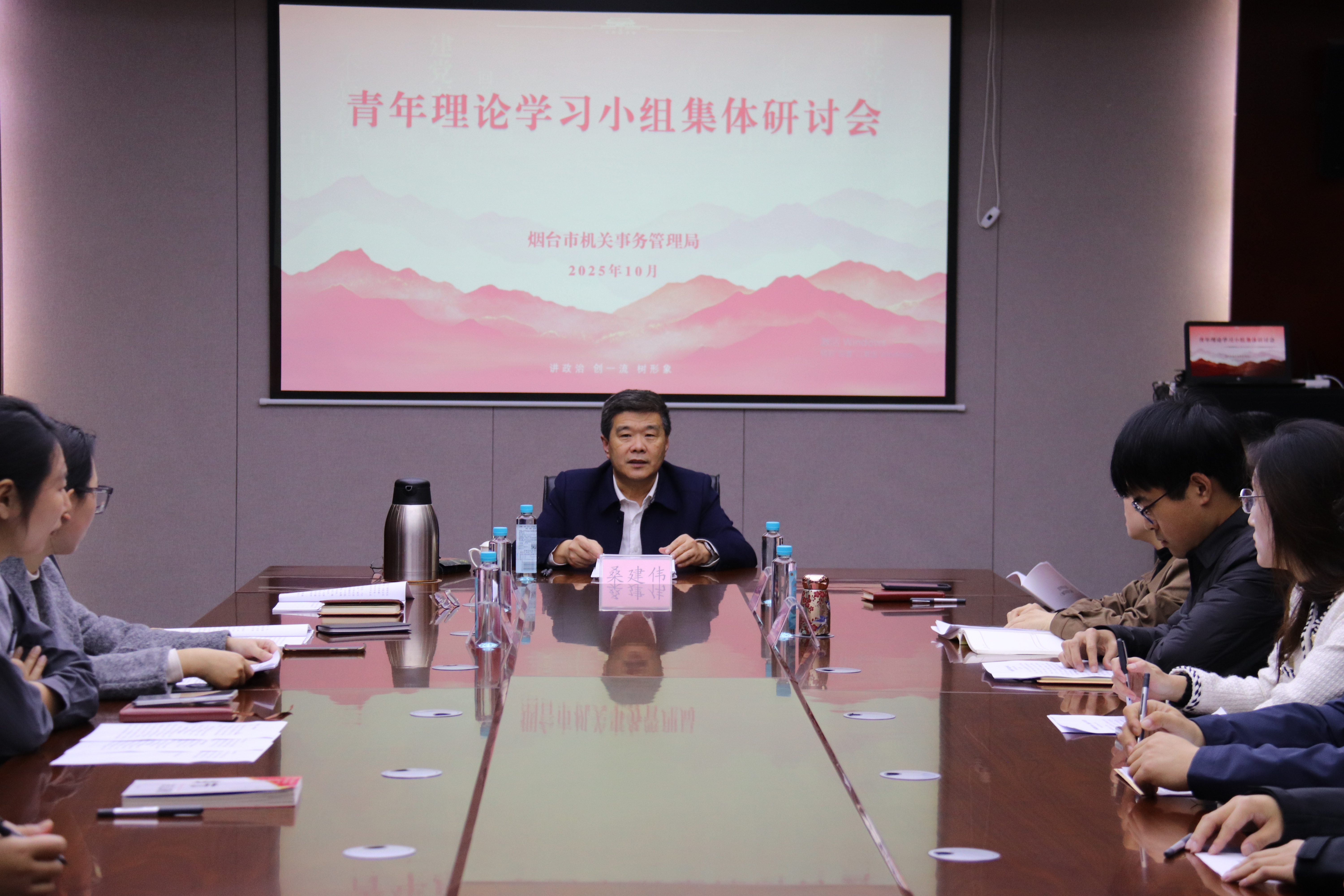 近日,市机关事务局举办“我与局长面对面”青年理论小组集体交流研讨会。此次学习研讨会紧扣局党组对青年干部培养要求,持续打造“星火政能量”青年理论学习品牌,搭建“分享+指导+答疑+赋能”的多维平台,畅通沟通渠道、凝聚思想共识、激发内生动力。市政府副秘书长,市机关事务局党组书记、局长桑建伟出席并主持会议,局机关、所属事业单位相关负责同志和青年理论小组全体成员共30余人参加。