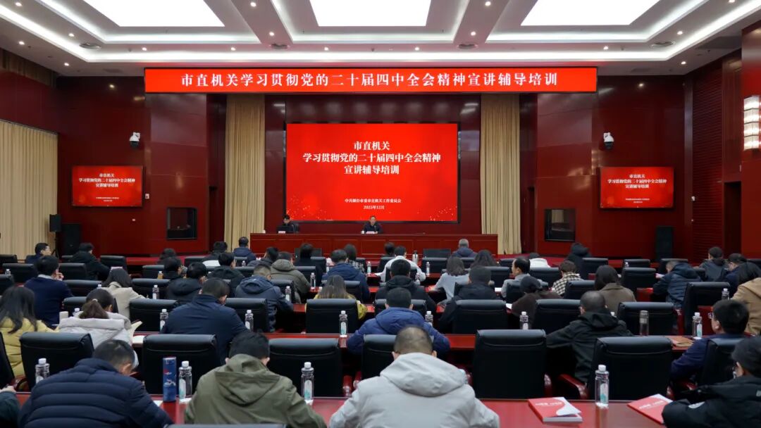 为深入学习贯彻党的二十届四中全会精神,引导市直机关广大党员干部将思想和行动统一到全会精神上来,12月18日,市委市直机关工委举办了市直机关学习贯彻党的二十届四中全会精神宣讲辅导培训班暨机关文化大讲堂。各直属党组织专职副书记(党建工作负责人)、社区代表共约110人参加培训。