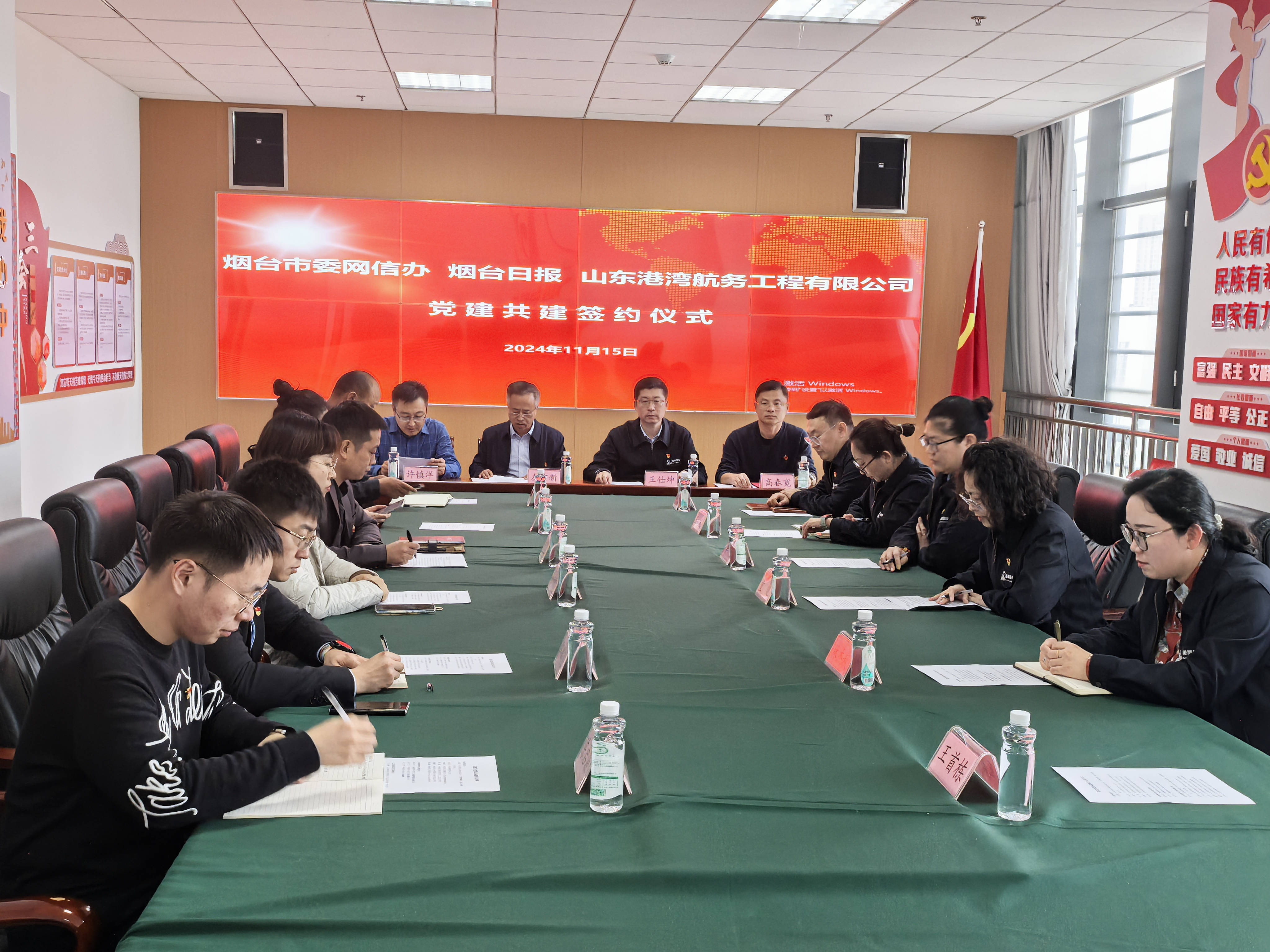为充分发挥党建引领作用,提升党建工作水平,切实加强党组织间的交流与合作,汇聚高质量发展的强大动力,11月15日下午,市委网信办、烟台日报、山东港湾航务工程有限公司共同开展“党建联动强引擎 文化共建促发展”党建共建活动。三方党组织相关负责人、党员代表30余人参加活动。