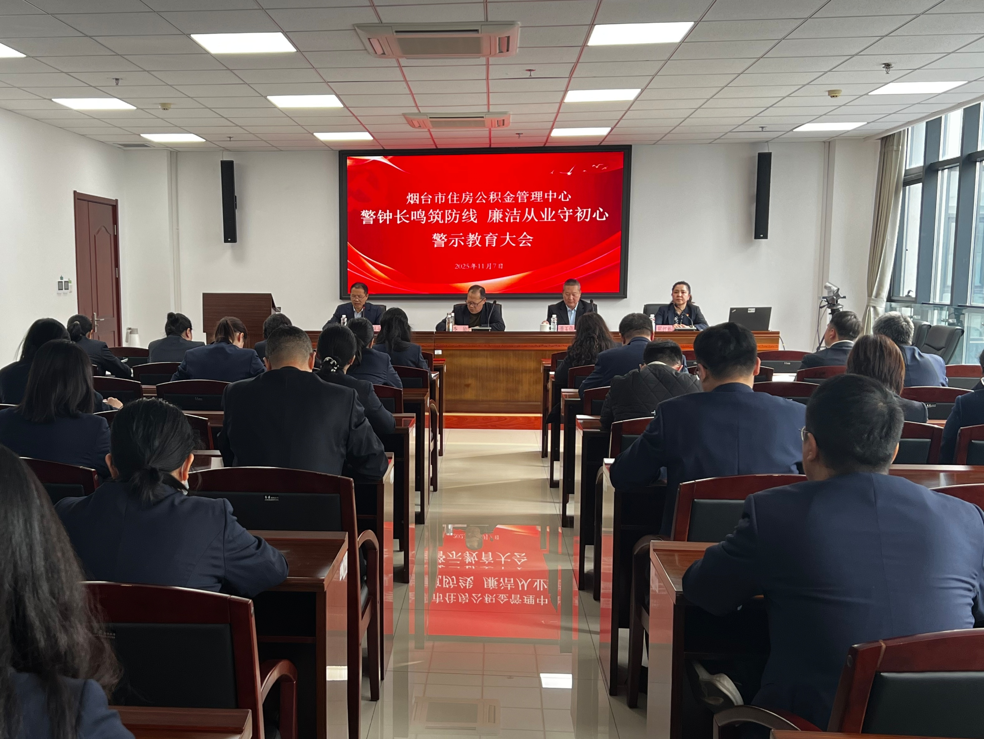 为切实防范风险,规范住房公积金管理工作,提高从业人员廉洁自律意识,11月7日,烟台市住房公积金管理中心召开“警钟长鸣筑防线 廉洁从业守初心”警示教育大会。中心全体干部职工、银行驻中心工作人员、劳务派遣人员等参加了会议。